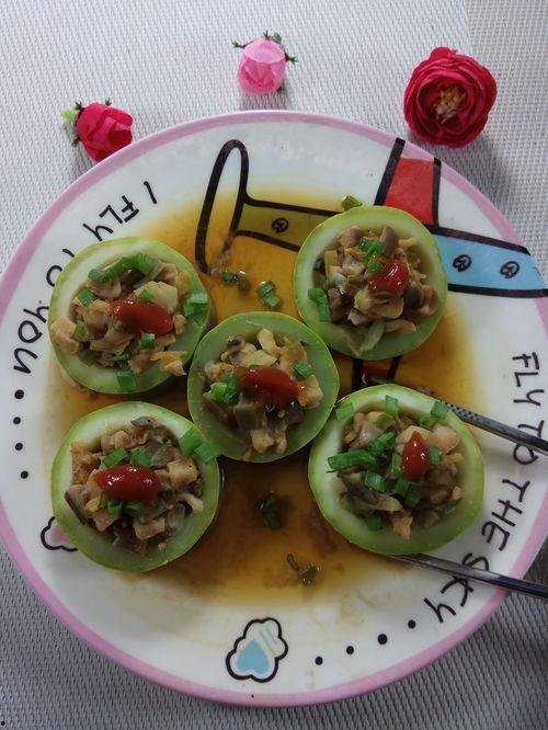 3. 香菇茭瓜蒸蛋:将香菇和茭瓜切片,鸡蛋打散,加入适量的盐、鸡精等调料,将香菇和茭瓜放入蛋液中,上锅蒸熟即可。